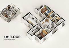 Floor plans with furniture layouts are designed taking into consideration the client’s requirements and enhanced by the architect’s aesthetics sense.